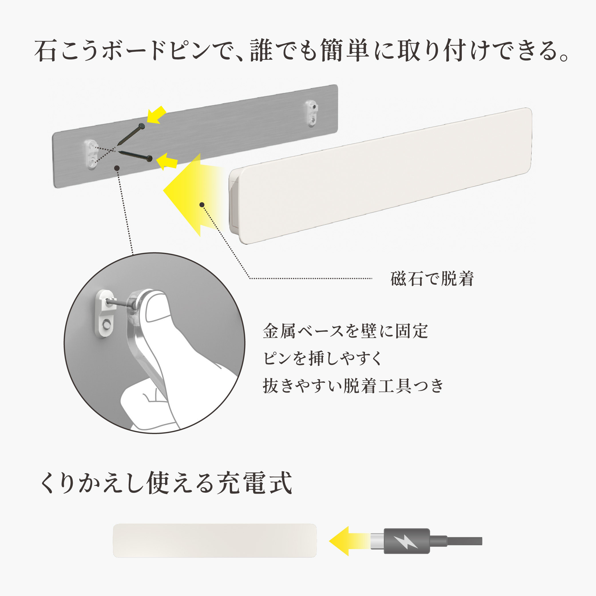 誰でも簡単に取り付けられるセンサーライト。