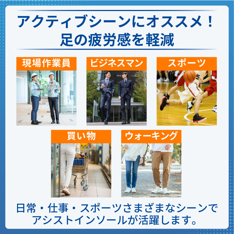 日本シグマックスの技術が詰まったインソールで、疲れにくく安定した歩行をサポートします。